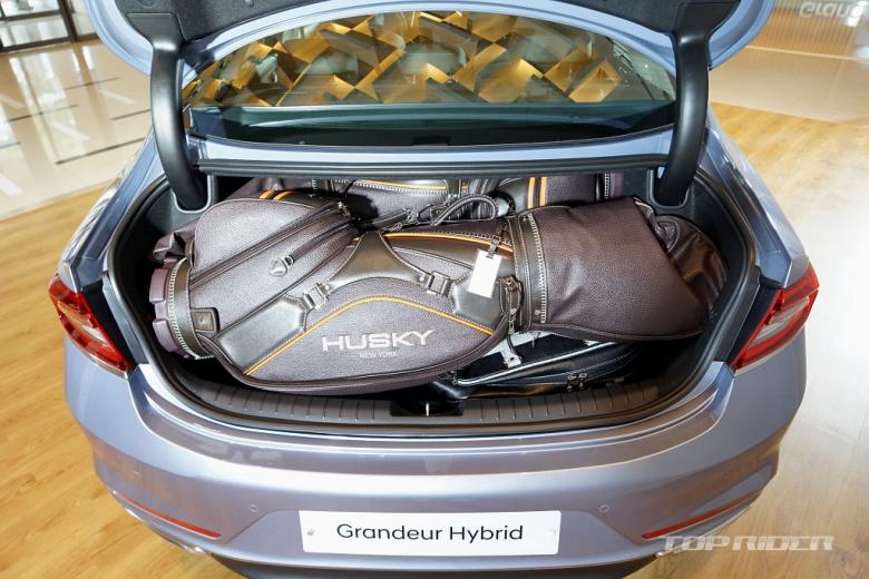 그랜져 ig 타고 있습니다.동료는 ig 하이브리드....빽 두개 보스톤 2개 들어가면 끝입니다. 일반 밧데리가 트렁크쪽으로 들어가 잇어서 공간이 작습니다.