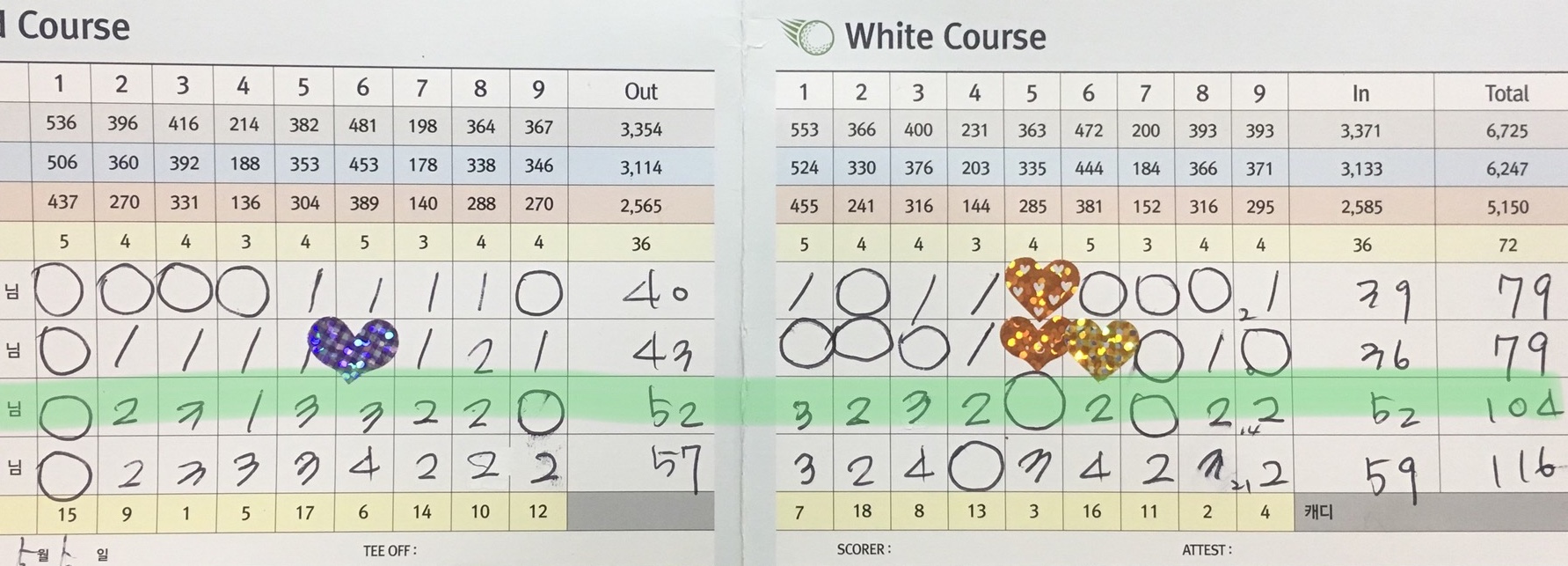 그런데 스코어 카드(순서는 장모님, 장인어른, 저, 와이프)를 보시면 아시겠지만 장모님 장인어른께서 고수시거든요...