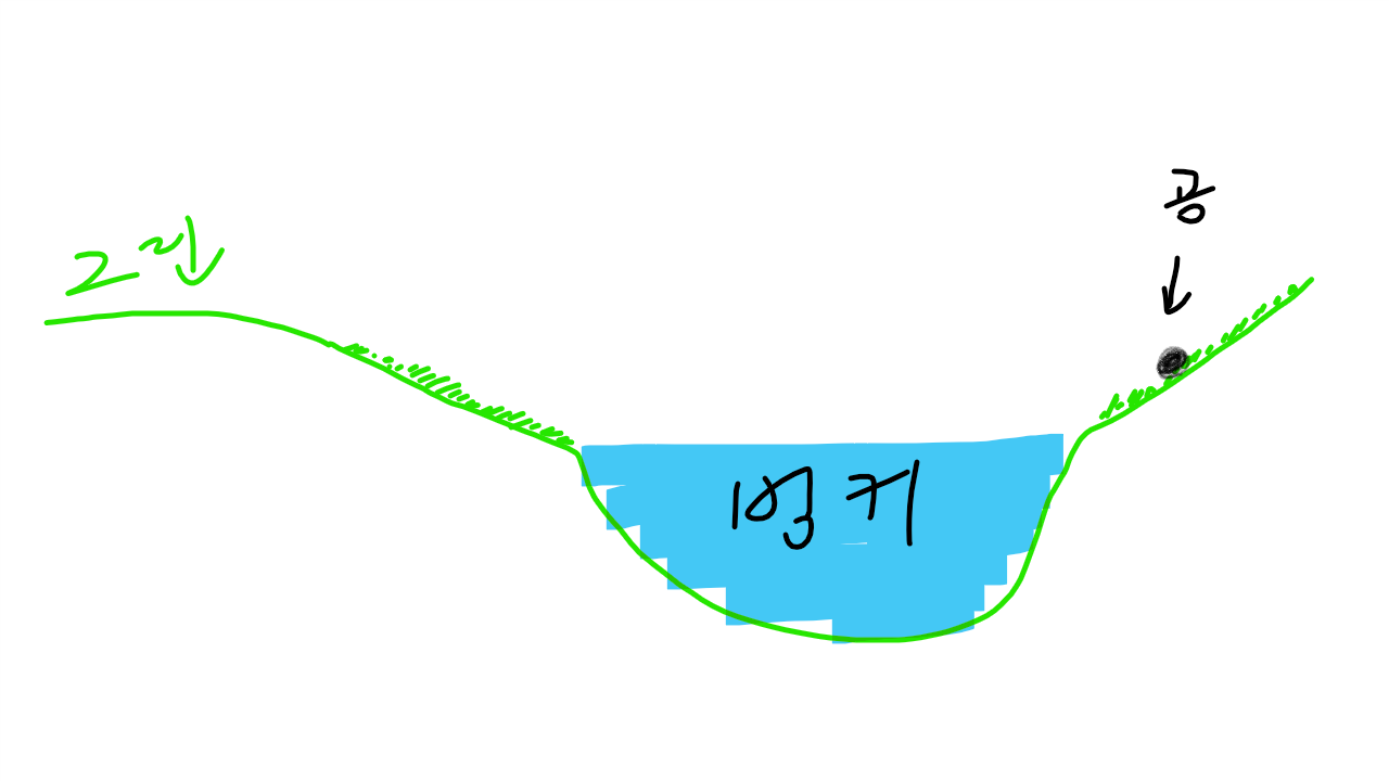 웨지 각도 세워서 공 끝 바닥을 찍으면 알아서 갑니다.