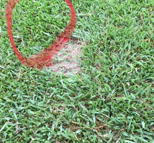 위에 사진처럼 잔디의 밀도가 좋을 때 “잔디밥이 요즘 좋네요”라고 말하는 분들이 있습니다. 빽빽하게 잘 키운 잔디를 컷트하면 마치 부추를 한단 움켜쥐고 칼로 자른 듯한 느낌이 듭니다. 첨부 사진에 표시한 부분처럼요.