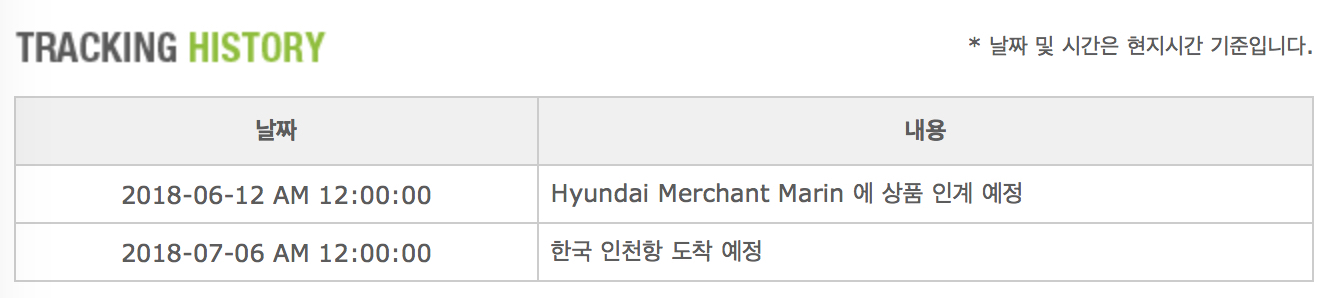7월 6일 인천항 도착이라 대략 13~14일경에 제가 수령할거 같은데요.