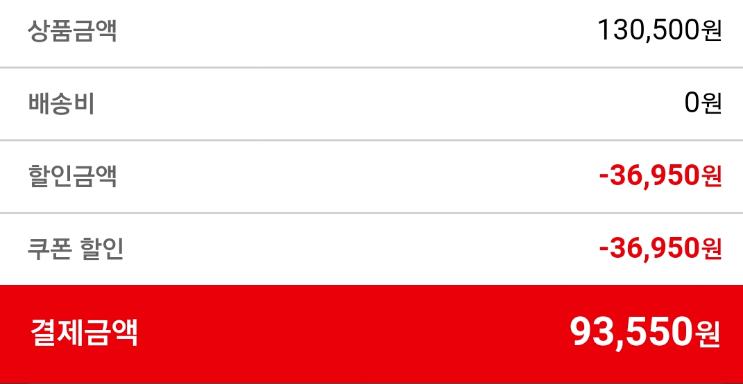 와 지난번보다 9000원 정도 더 저렴하네요.