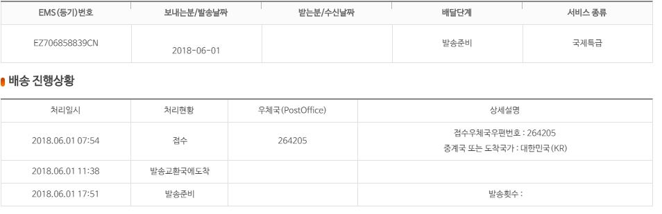 ems는 복걸복입니다. 일정 수량이 모일때까지 기다렸다가 배송을 하는지라 빨리 올때도 있고 늦게 올때도 있습니다. |