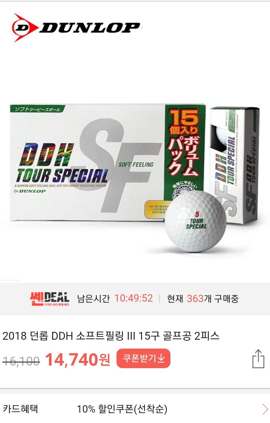 15개에 15천원이 안되는 2피스 공이지만 나름 국내 선호도가 있는 Dunlop DDH Tour Special 2018년산 2피스 골프공 입니다.