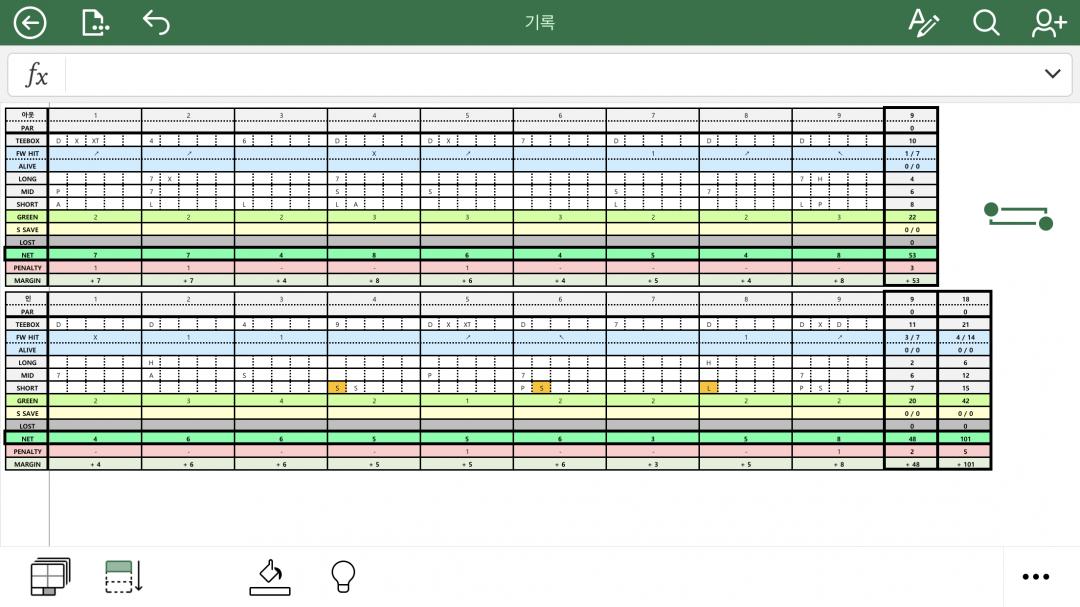 대충 요렇게 ↑↑↑ 와꾸 짜서 라운드 중에 기록합니다.