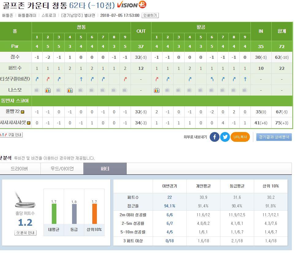 퍼팅이 스코어에 가장 큰 영향을 미치죠...~~ 라베 축하드립니다.