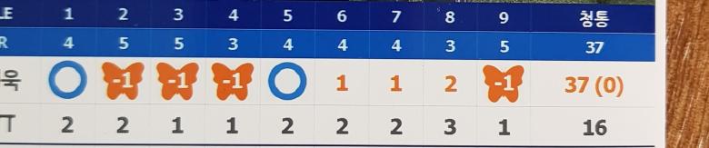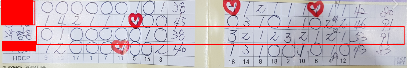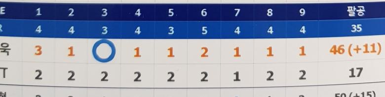 후반이 얼마나 저질경기였나면... 후반에 공 해저드에 하나 빠져서... 총 공 2개로 경기를 했는데