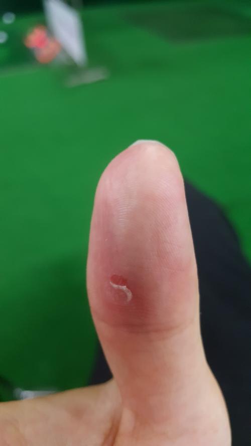 제가 연습을 하다가 상처가 낫는데, 뭐랄까 공을 둔탁한 소리를 내면서 치면 이런상처가 나는듯싶습니다. 제 그립이 원인인가 하기도 하고요. 혹시 이렇게 피부가 밀린듯한 상처나신분있으시면 조언좀 부탁드립니다.