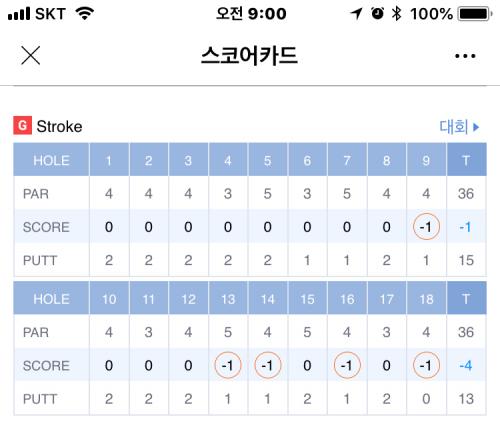 백티라도 그리길지 않은코스라 부담은 되지않았는데 요즘은 스크린 자주 치지않으니 퍼팅이 말을 듣지 않네요. 그래도 약빠라 언더는 나오는군요.