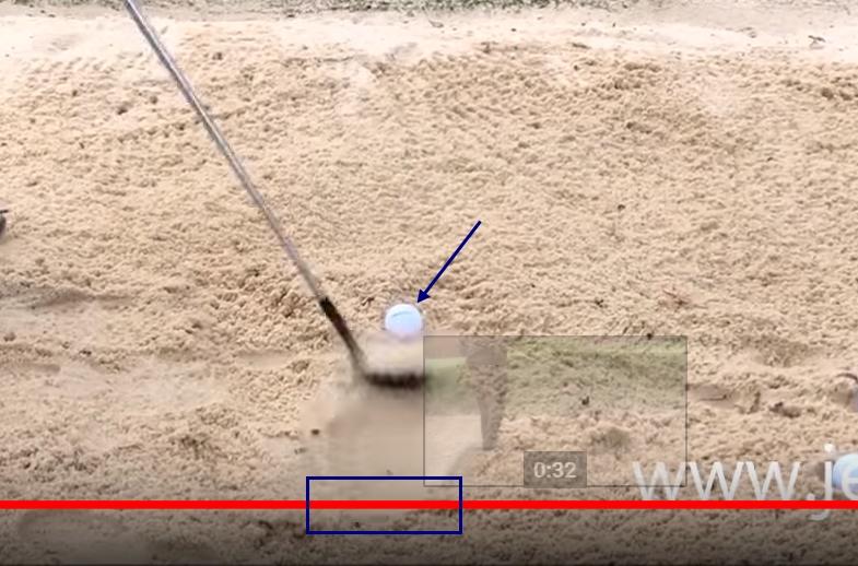저 파란 네모로 된 부분부터 뒤땅 시작인데..... 공은 한 3~40cm 앞이고...