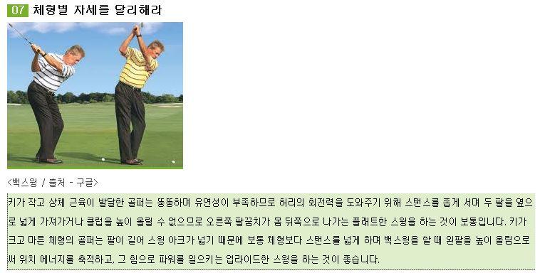 체형이 뚱뚱하며 상체가 발달했는데...첨부한 사진 우측과 같이 업라이드한 스윙을 가지고 있습니다.