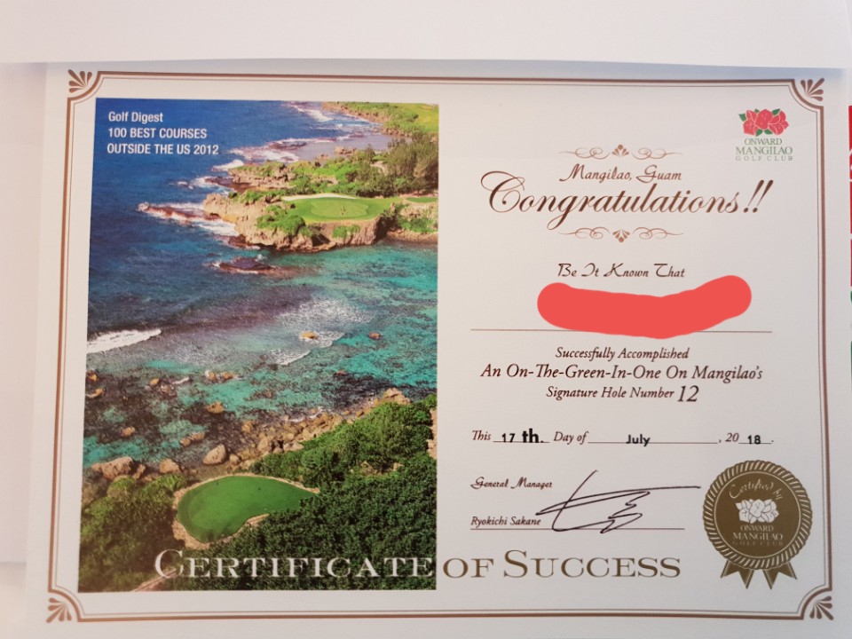 온그린만 해도 저 증서를 주는군요...멋진 홀이네요. 바닷물에 공 많이 뿌리겠네요.. |