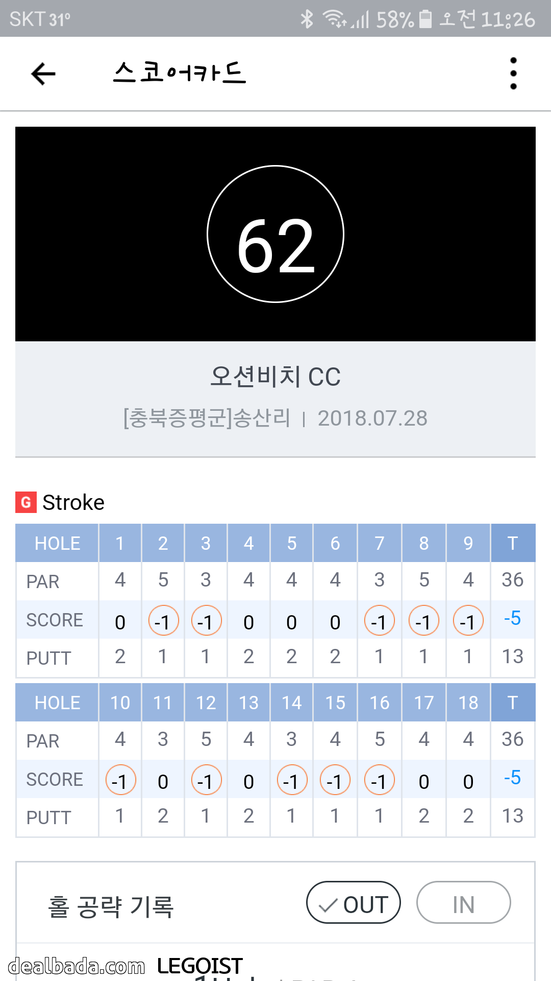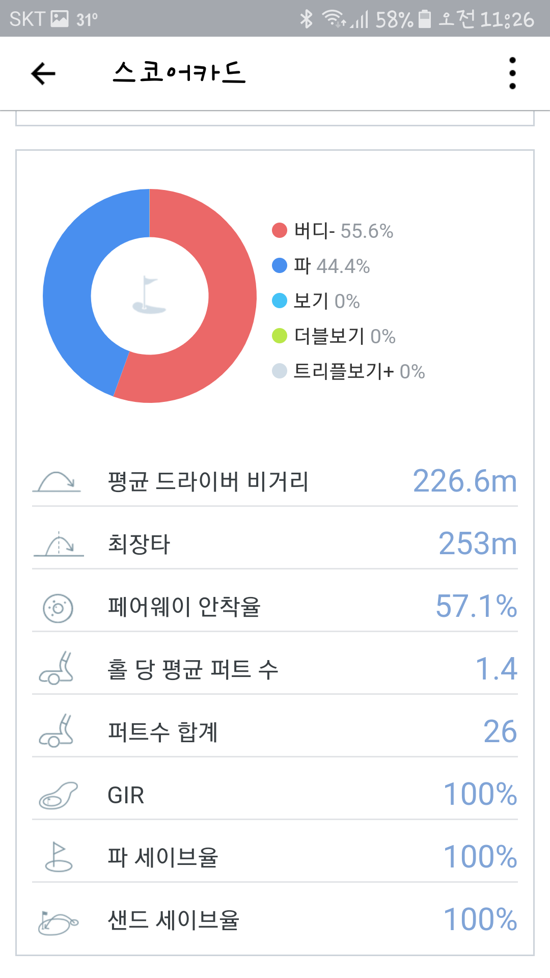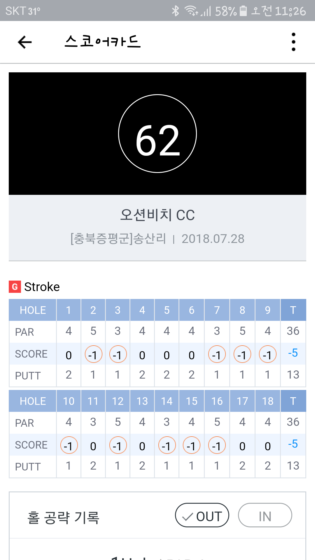 기존 라베가 5언더고 g핸디 0인데 첨으로 두자리 언더 해보네요ㅎ 게다가 노보기도 첨으로 달성했어요ㅎㅎ