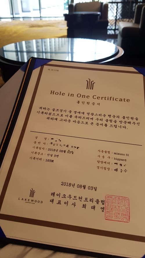 홀인원 증서&사진(feat. 그린쟈켓)은 받아왔고요.