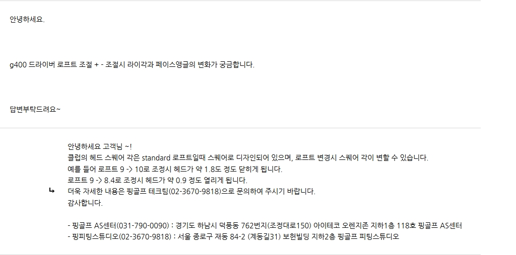 G400 드라이버 로프트 조절시 페이스 앵글 변화 > 골프포럼