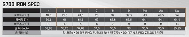 제 기억에 New G 아이언의 S가 54도 였던거 같은데, 파워스펙인 G700이 54도가 아닐것 같아서요.