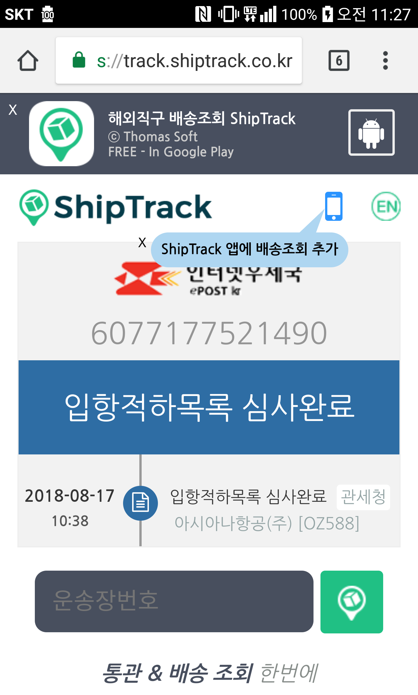 ㅎㅎ 아니요 걱정안하셔도 되요~ 저러다 통관 뜨더라구요~ |