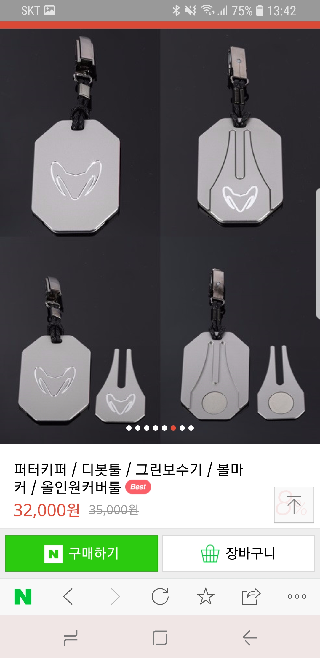 퍼터키퍼의 연결된 부위가 납작해서 주머니에 쉽게 꼽을수있고 볼마커도 되고 아직은 경향이 없는 그린보수도 가능한데 가격이 만만치 않네요