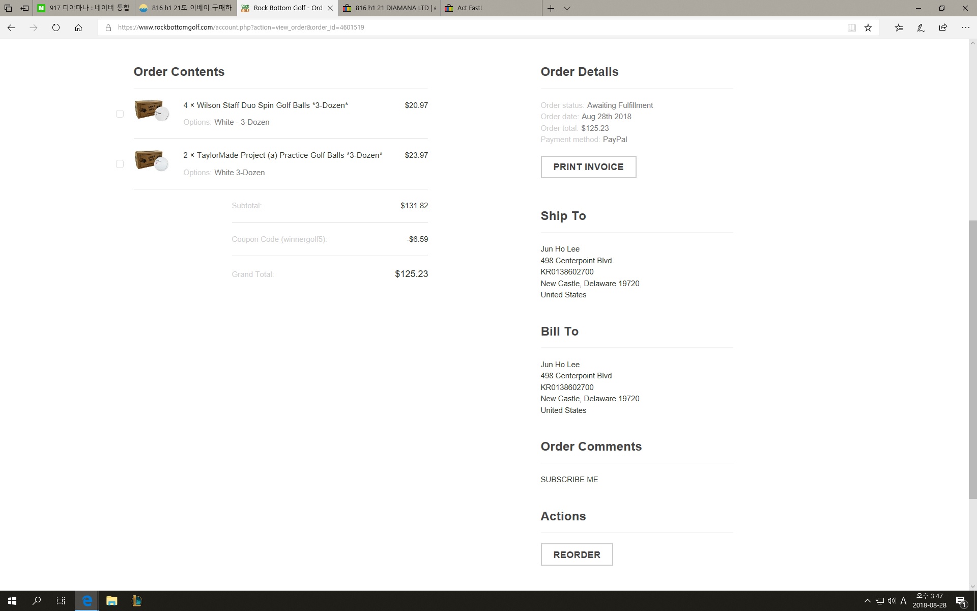 그리고.. 페이팔로 등록해둔 주소가 있는데. 한국 주소거든요,