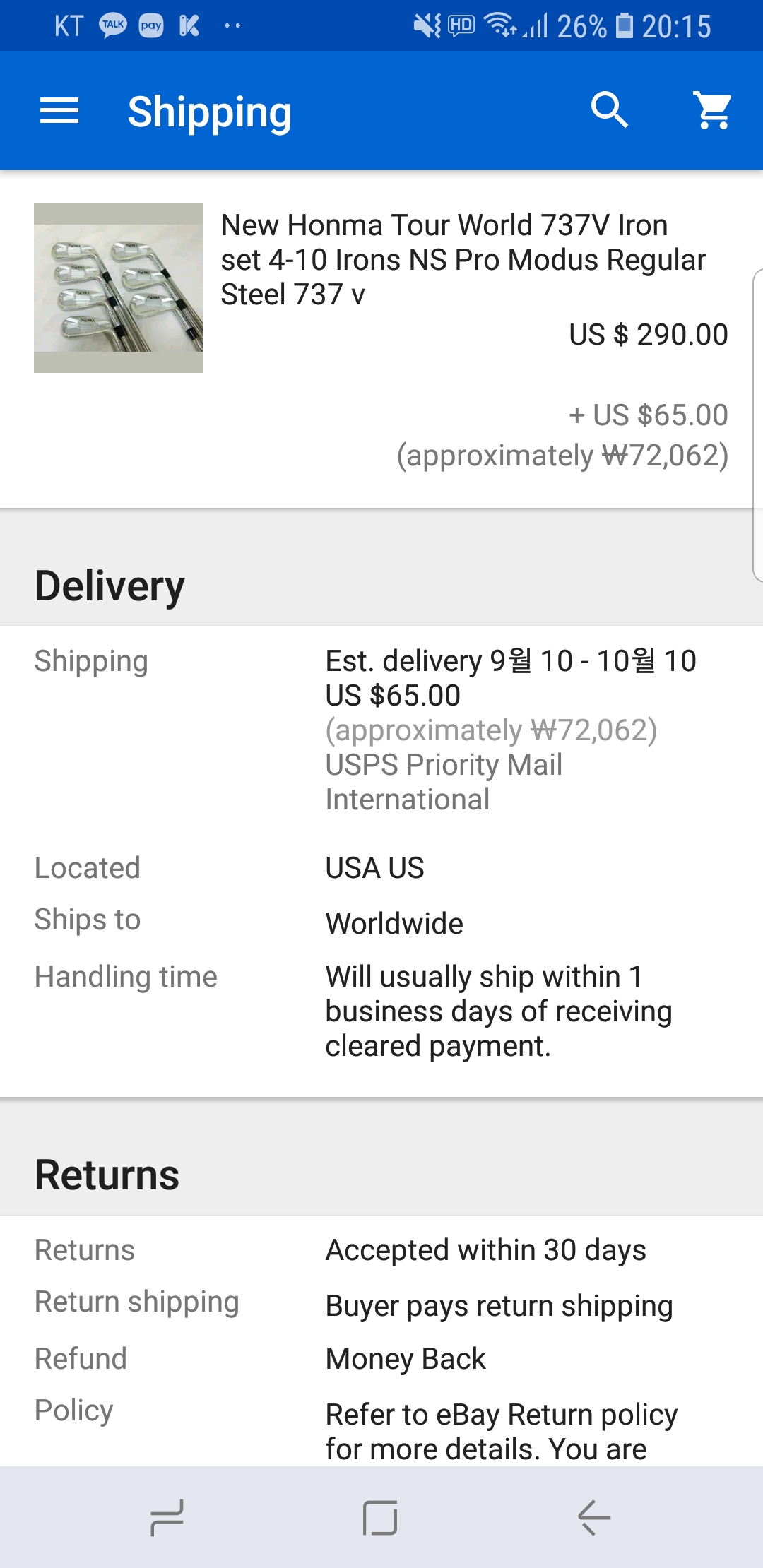 Shipping 주소가 한국주소인것같아요. 국가설정 미국바꾸시고 주소 미국배대지 주소로 바꾸세요 |