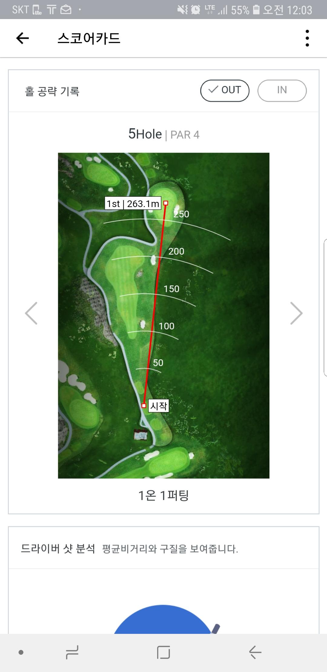 이븐데일 5번홀 파4구요, 내리막 버프를 받아서 드라이버 샛이 거짓말 같이 홀컵 1m 남기고 멈췄어요 ^^