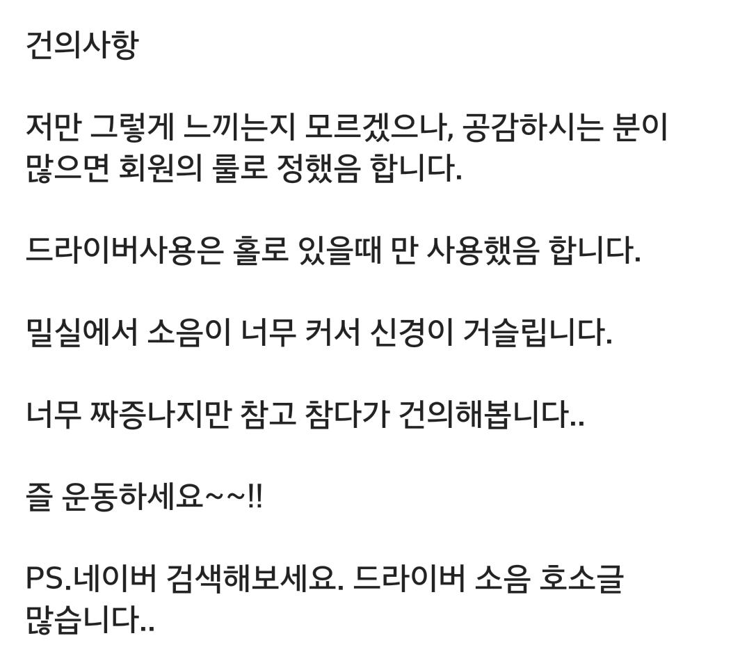 공간 특성에 따라 드라이버 소리가 거슬릴 수도 있겠네요 |