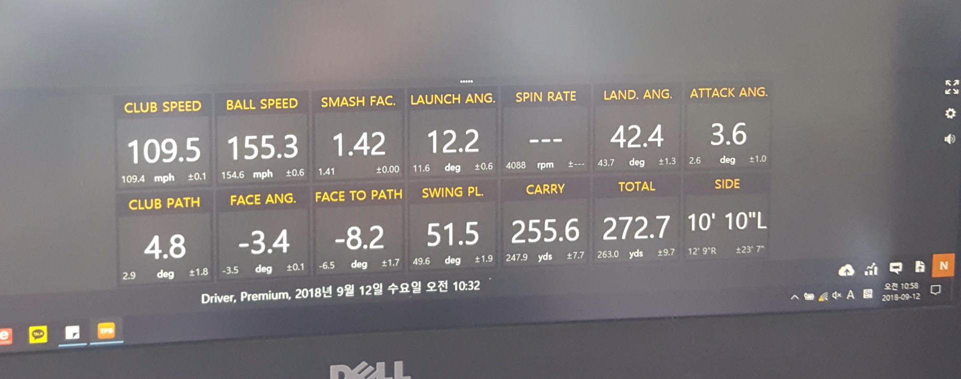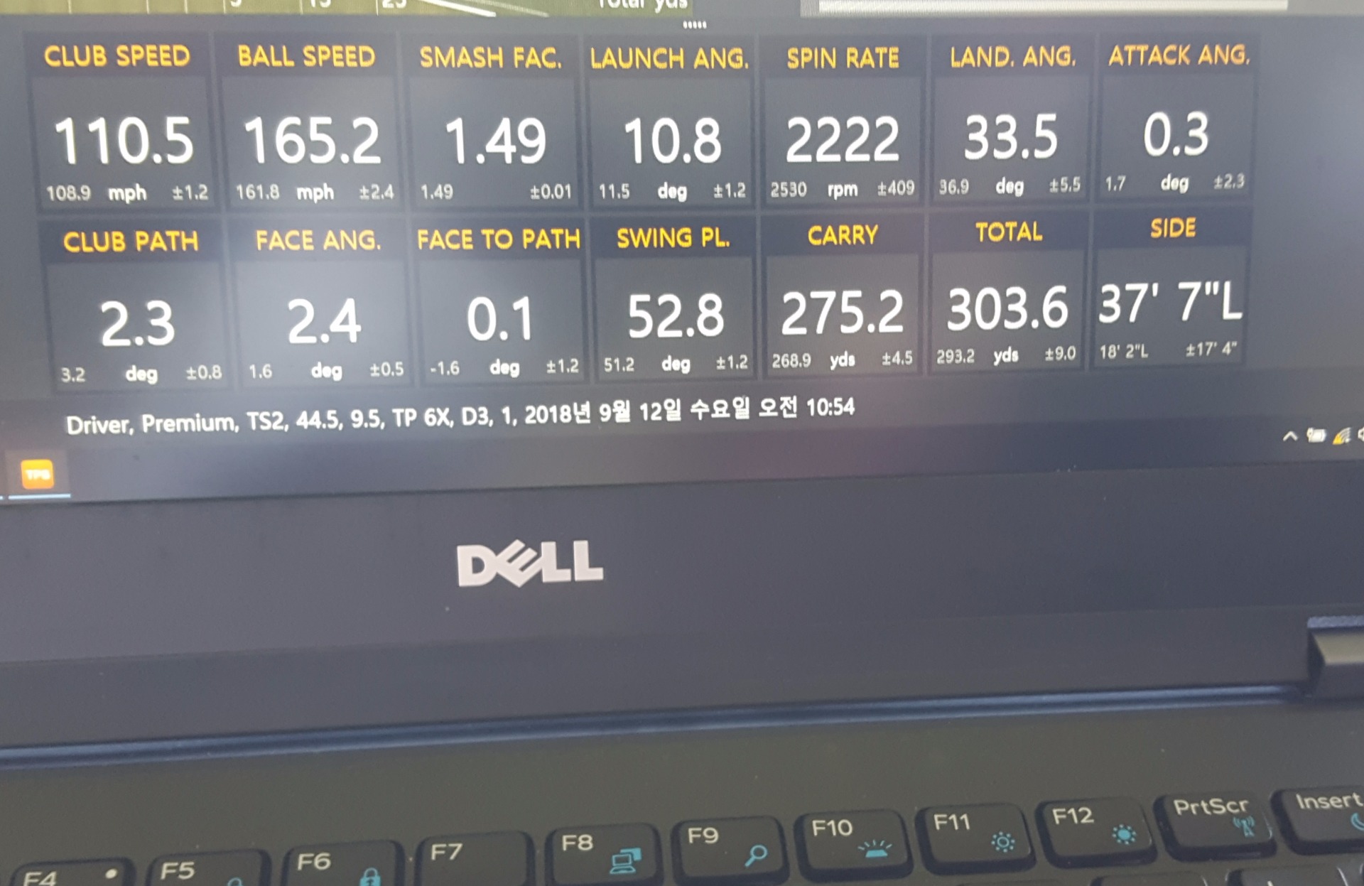 TV에서나 보던 숫자가 보이네요... 헤드스피드 110마일~~