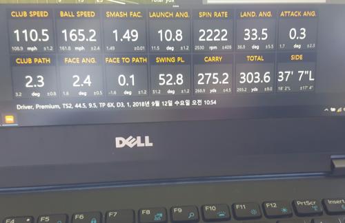 헤드스피드 110마일에 볼스피드 166정도 스매시팩터 1.49~1.50정도에 매우 스트레이트 구질로 평균 300 야드 넘게 나오네요.