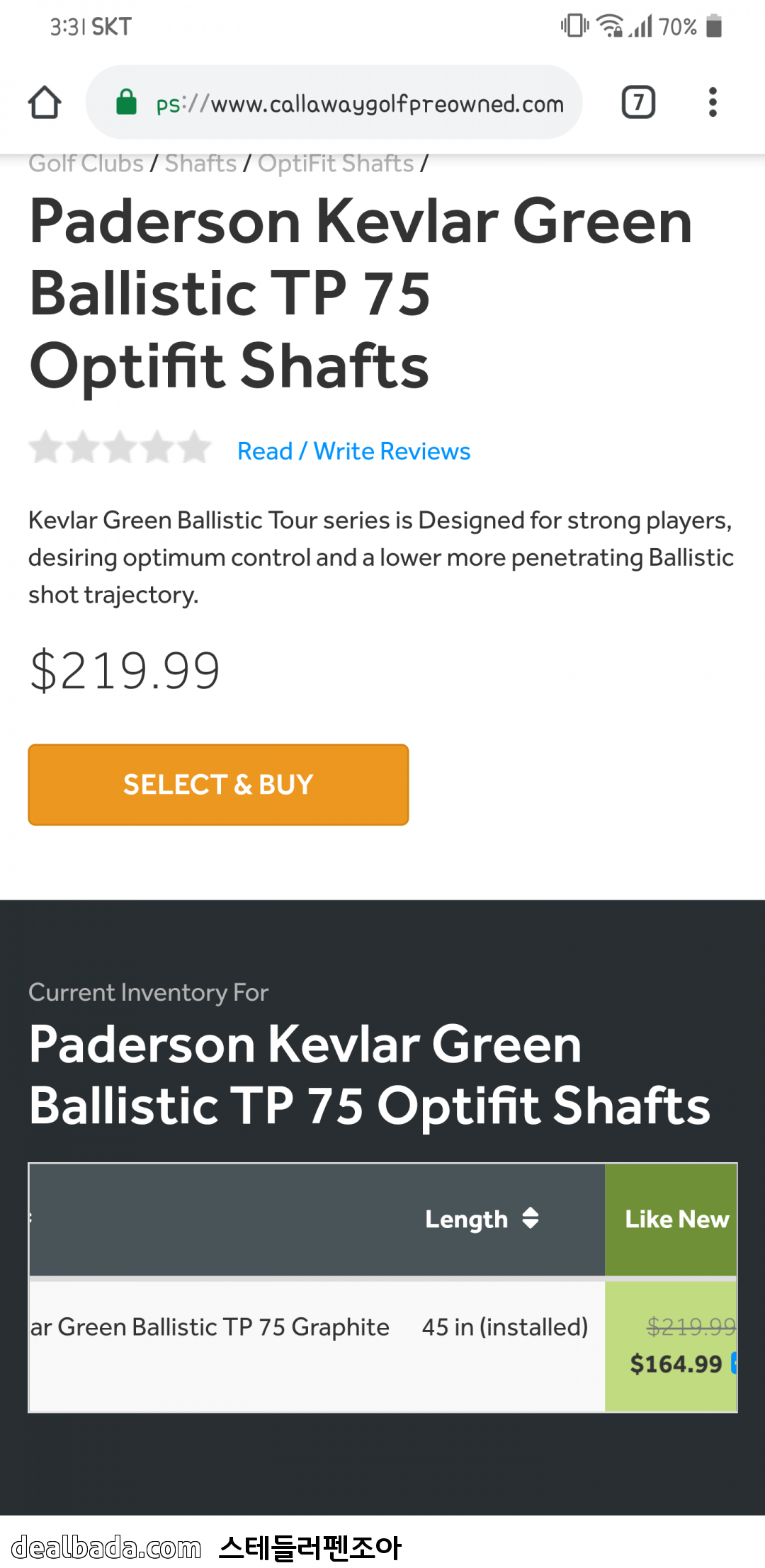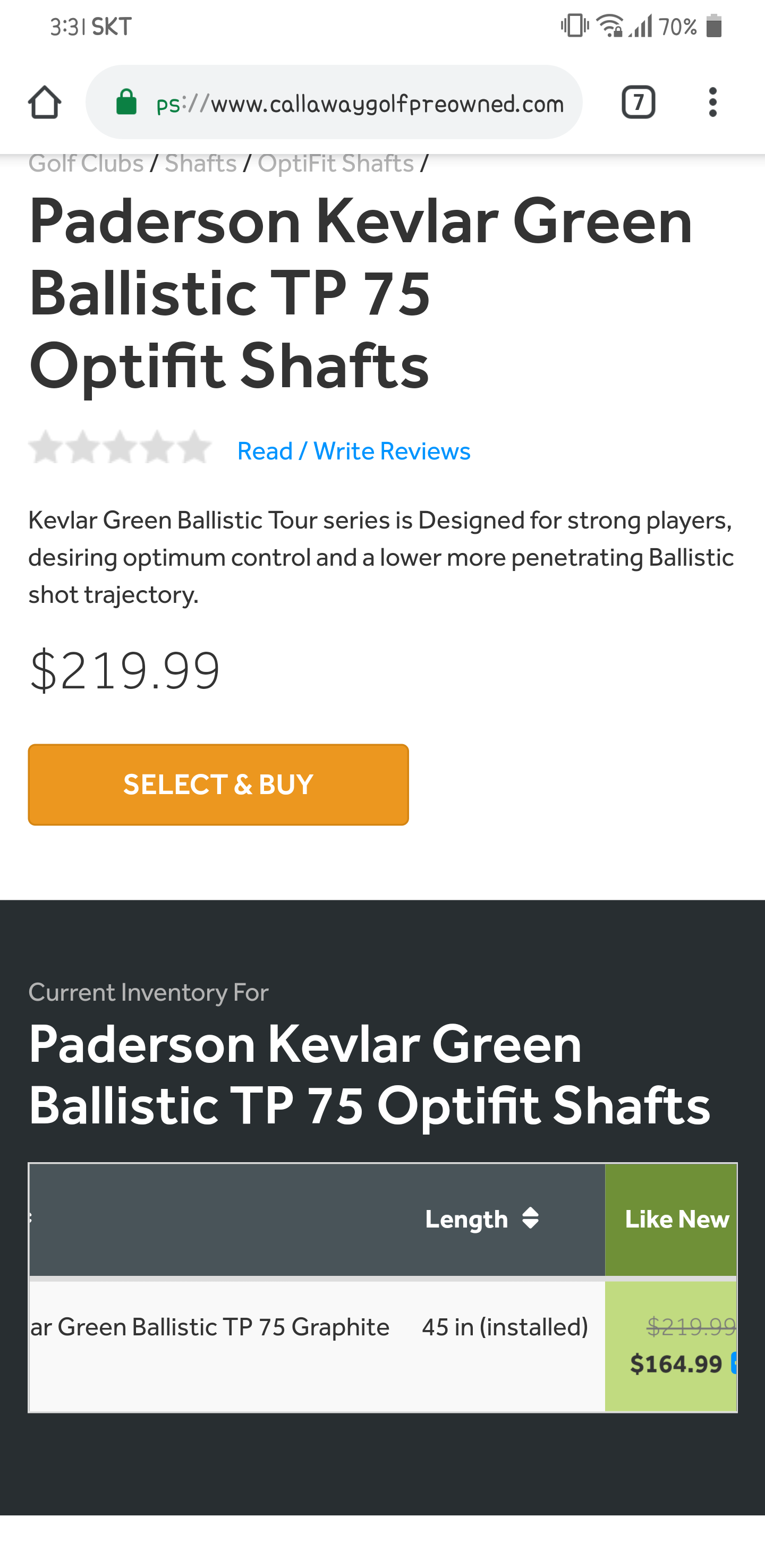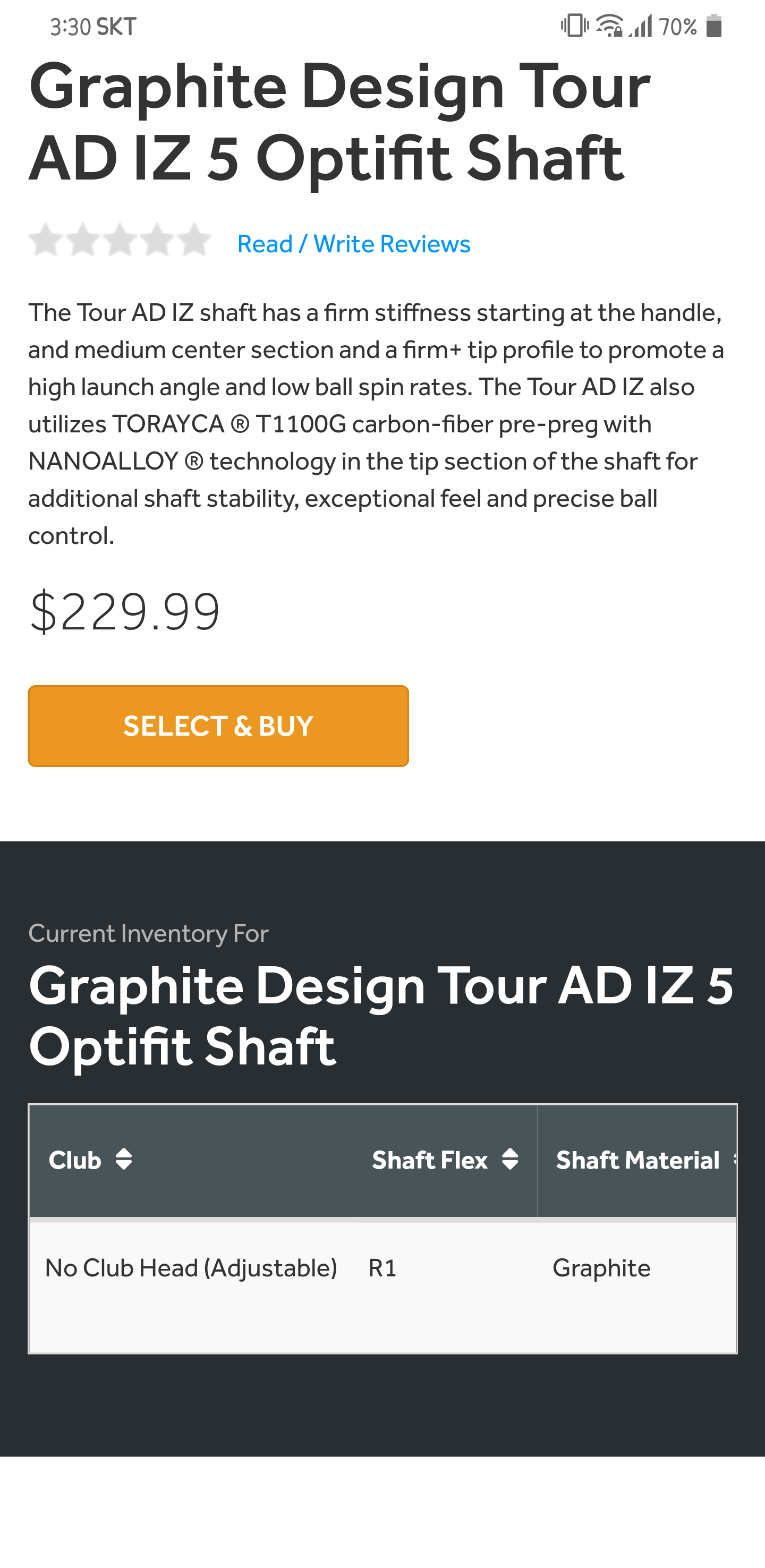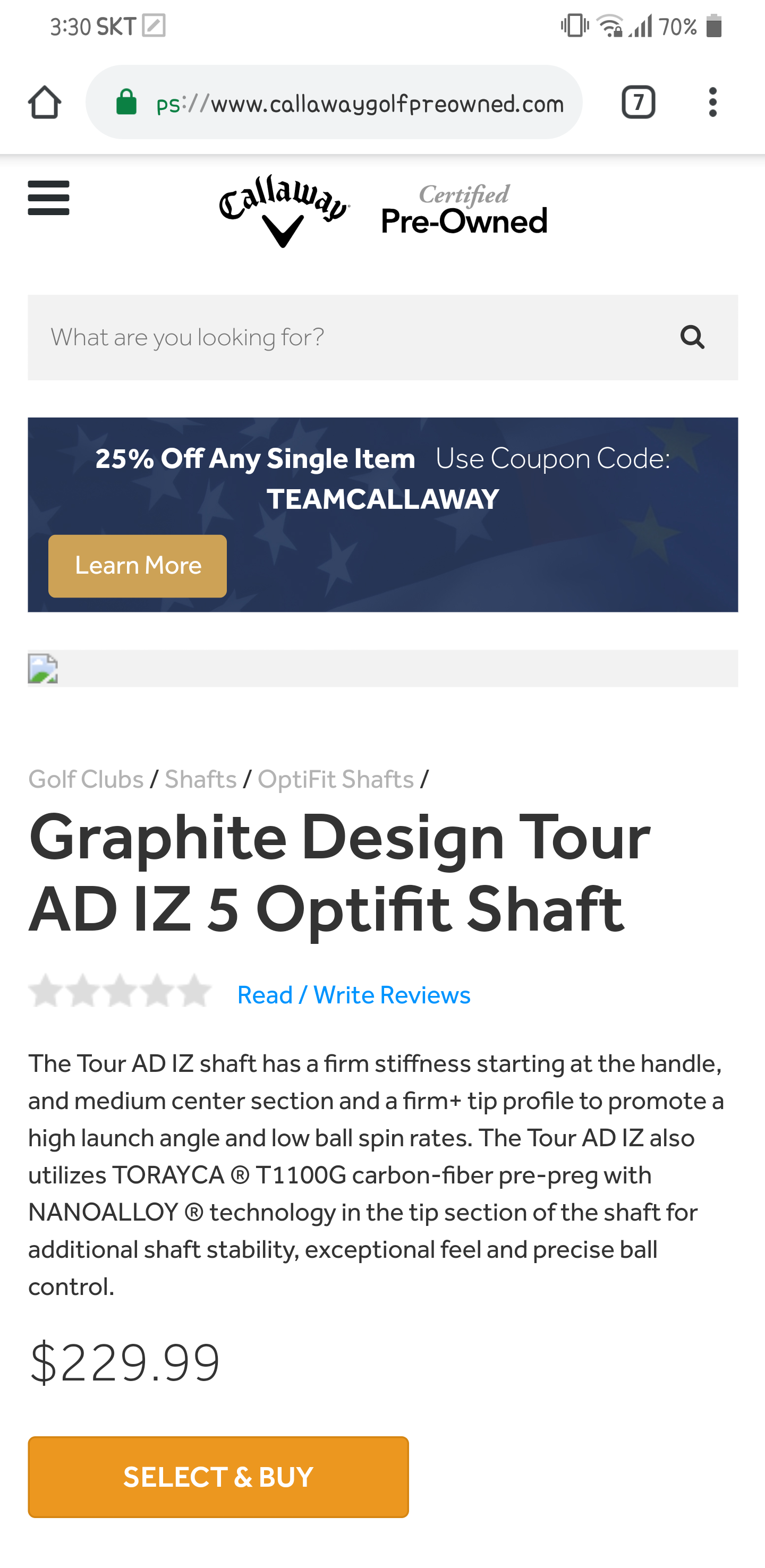 캘러웨이 샤프트를 사서 유료로 슬리브를 핑으로도 변경 가능하겠죠? |