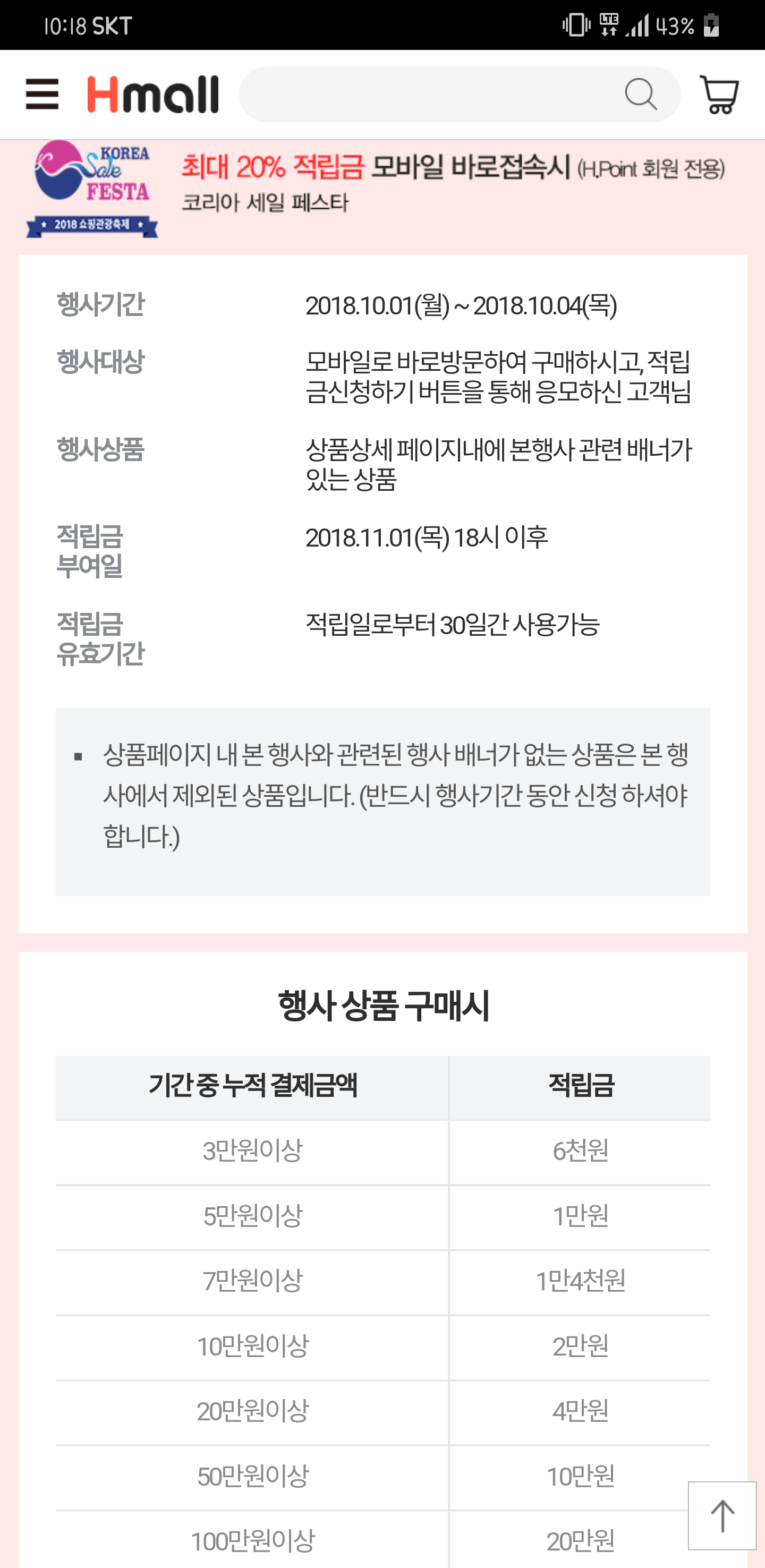 11월 1일 h.point 20만원(100만원이상) 지급.