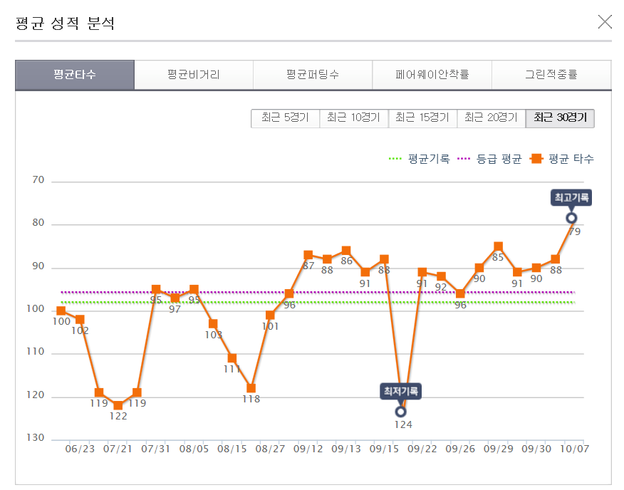 6월 17일 루키모드로 112개 치다가 약 넉달만에 지투어로 싱글까지 왔습니다.