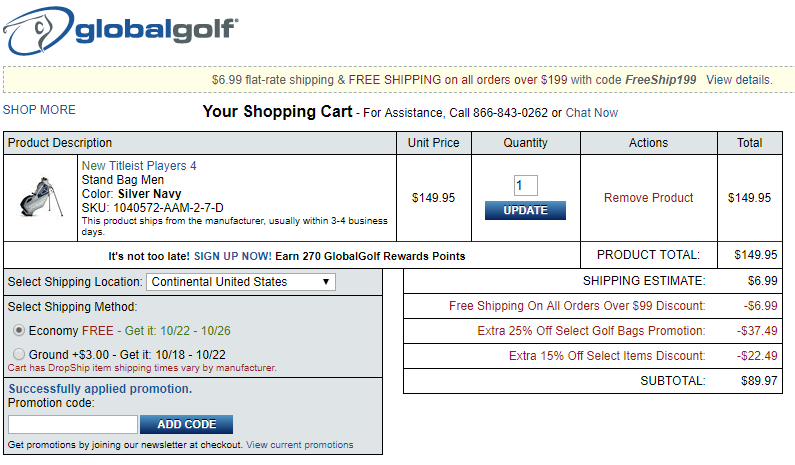 - $37.49 (25% Off Promotion)- $6.99 (Free Shipping Over $99)