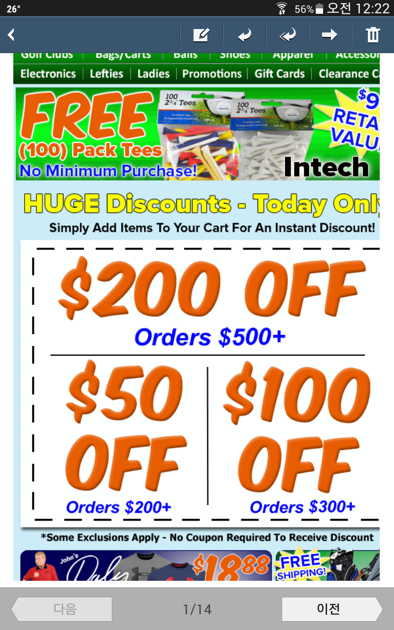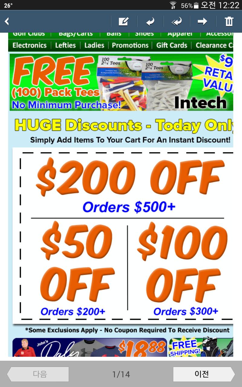200불 구매에 50불 인하, 300불 구매에 100불 인하 등 25% 이상 할인하면서 잠못이루게 하네요^^