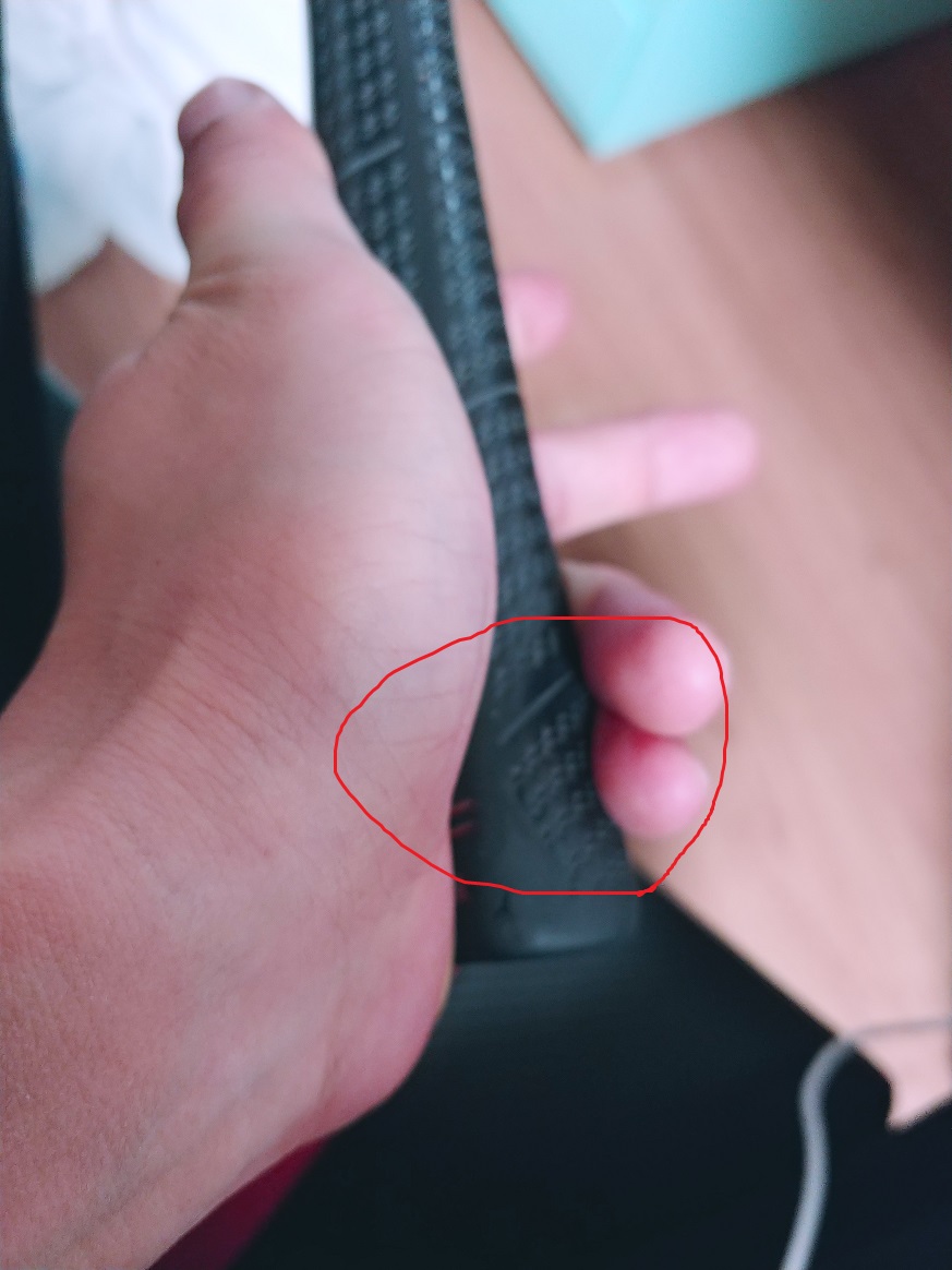 저 손가락은 그립을 꽉 쥐면 안되는데, 꽉 쥔 결과 저 부분의 살이 두꺼워진것 같네요.