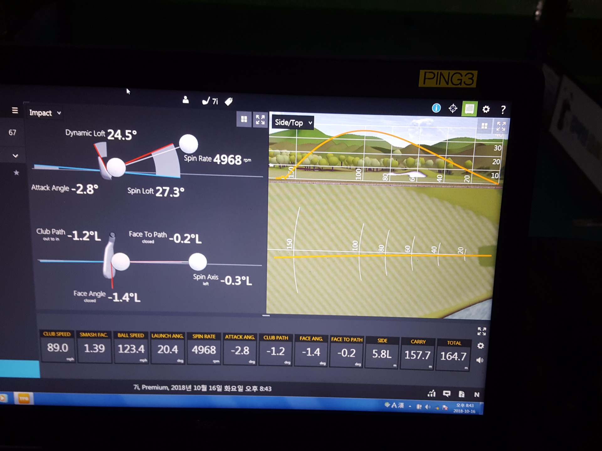 시타해보면서 바로 트랙맨으로 정보확인