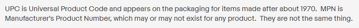 UPC, MPN 이거 두개는 무슨 뜻인가요?