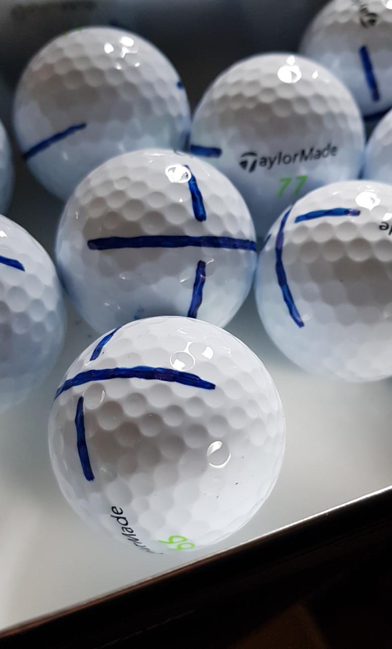 전 판박이 스티커를 붙이기도 합니다. 알리에서 몇백원어치 사면 공 두박스 정도는 붙여요. 가끔 캐디분이 이물질 뭍은건줄 알고 빡빡 닦다가 판판이 스티커인줄 알아보고 무안해 하기도 합니다. |