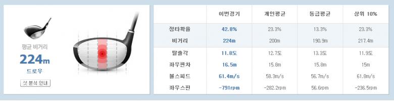 와 티샷 일관성 좋으시네요. 42퍼센트 첨 봅니다.^^