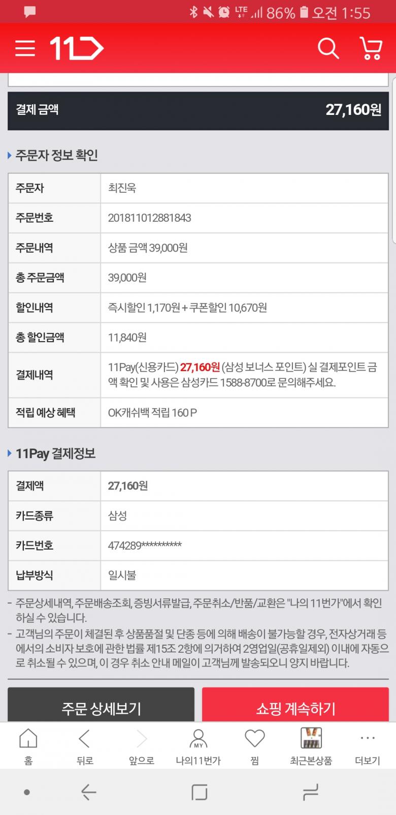 감사합니다.11번가 11페이로 결재하니 5천원 더 할인되는거더군요 한참 찾았습니다 ^^ |
