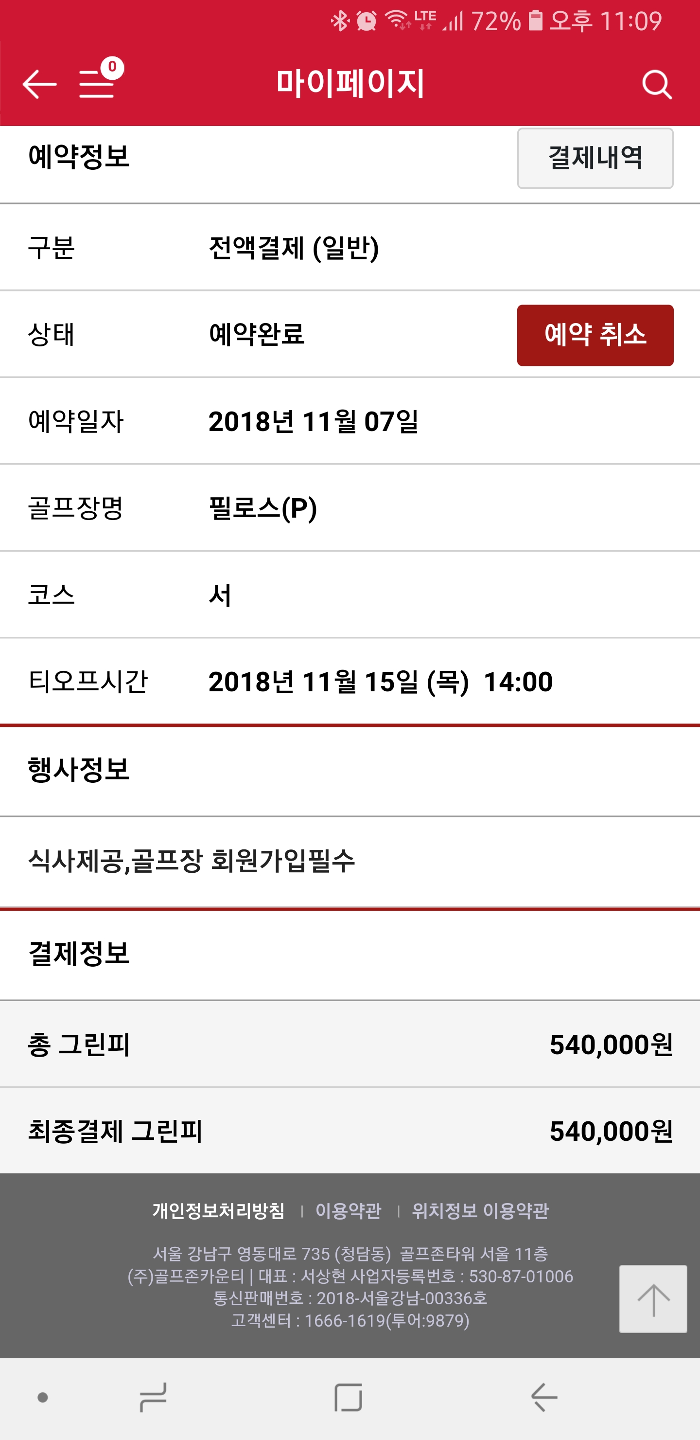 30대 초중반 부부이고 핸디는 +20~+30 사이입니다. 그린피를 선납 해 놓은지라 파티 깨지는 걸 방지하기 위해서라도 그린피를 미리 보내주실 수 있으면 좋겠습니다.