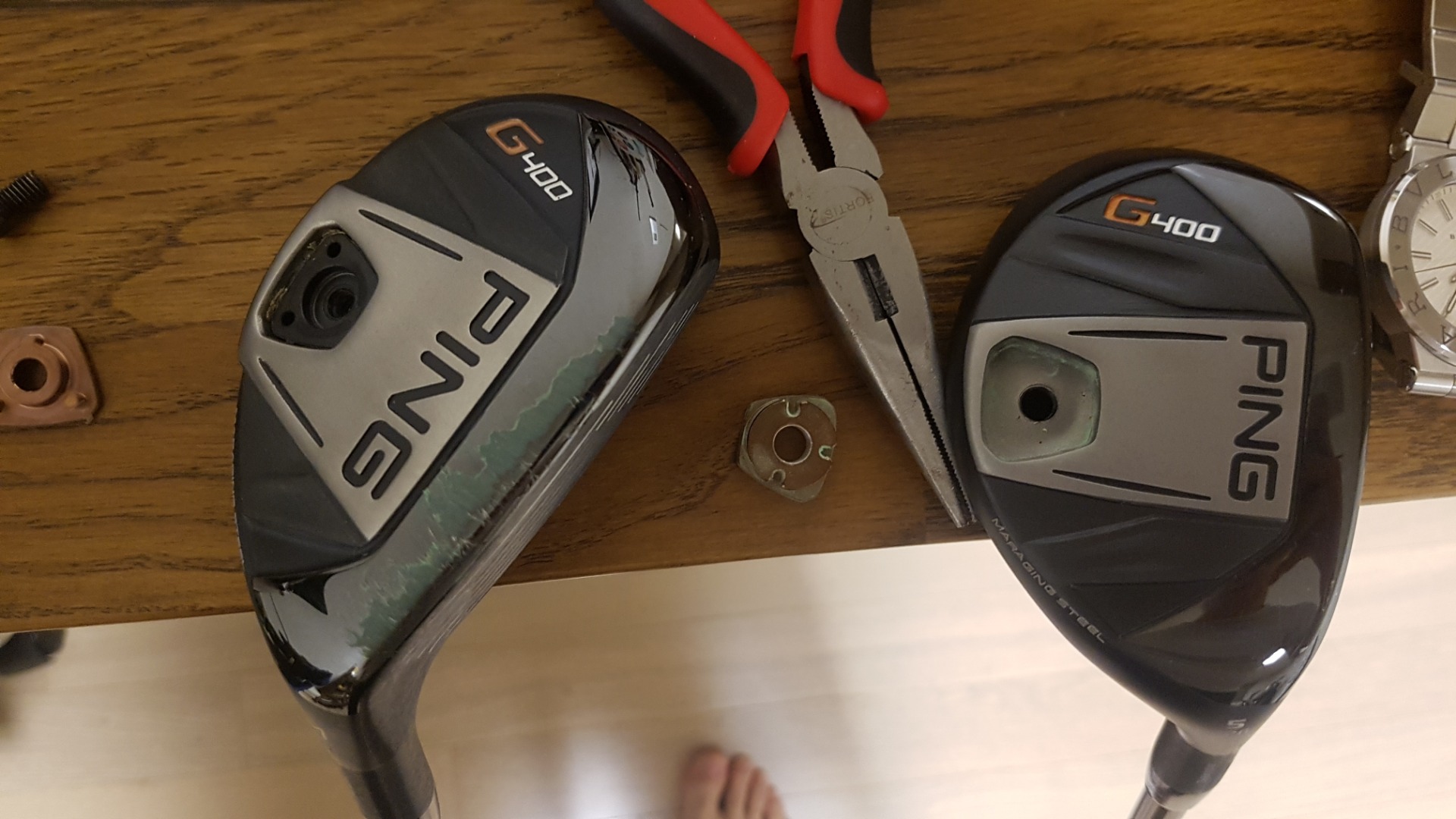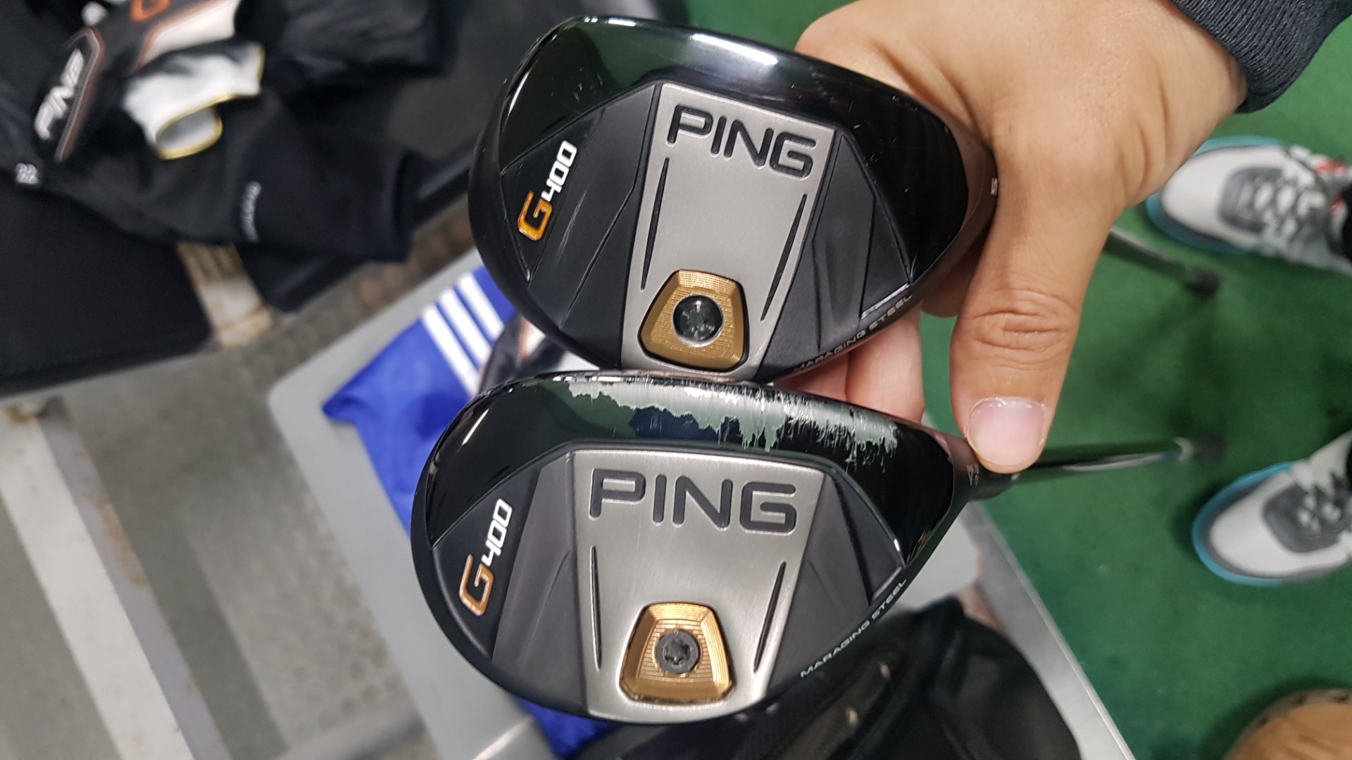 와서 보니 제 g400 4번 유틸이랑 헤드 솔부분 모양이 다르네요. (1번 사진 우측) 핑 글씨 폭이며 선이 떨어지는 부분 등 인터넷에서 찾아본 모양이랑도 좀 다르구요. (2번 사진)