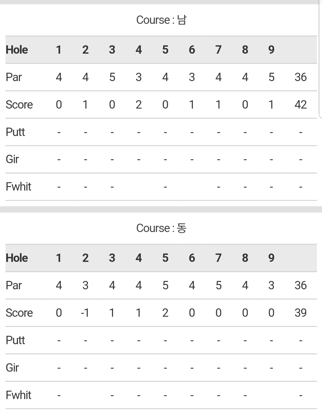 전반은 좀 그랬는데 후반에 버디펏이 너무 많이나와서 반만 들어갔어도 버디 세개는 될듯했는데...스코어가 좀 아쉽네요.