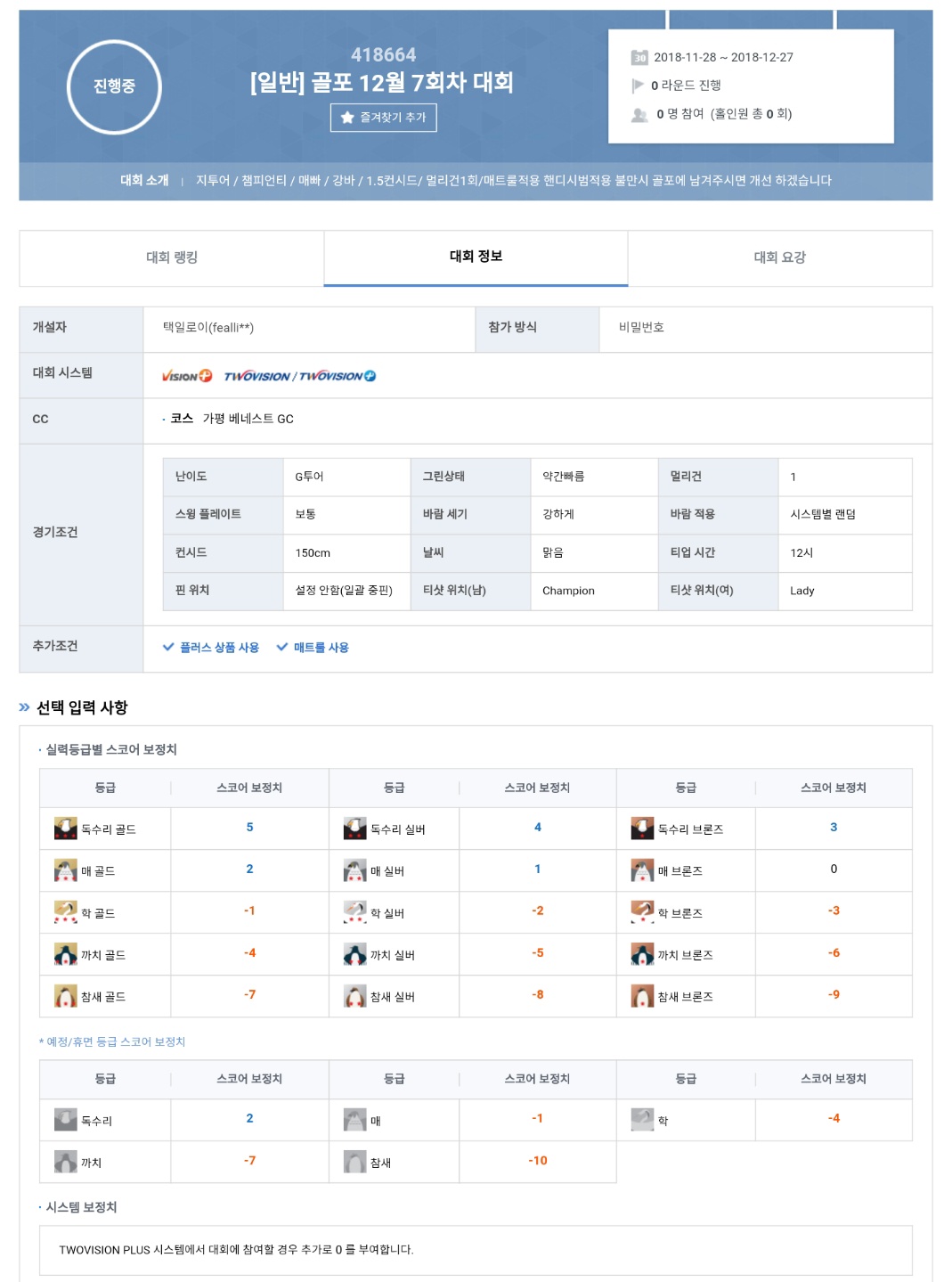 지투어 / 챔피언티 / 약빠 / 강바 / 1.5컨시드/ 멀리건1회 / 매트룰적용