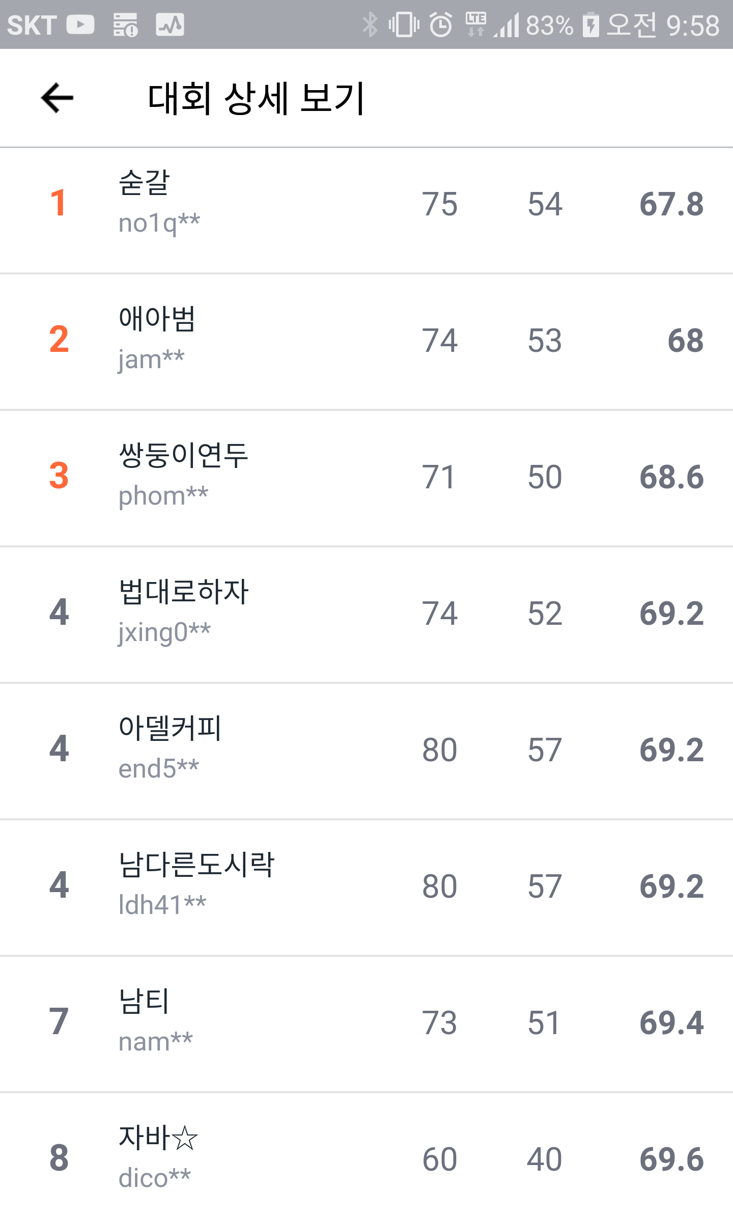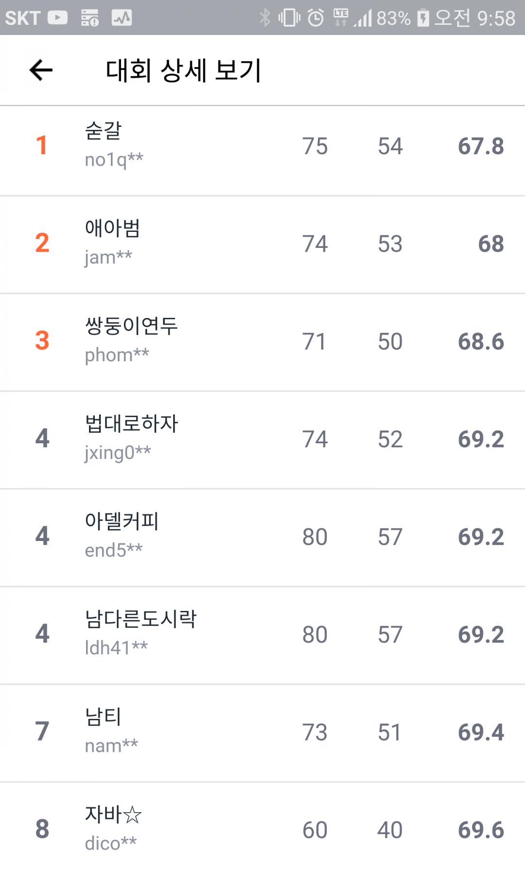 ㅎㅎ 2위 아쉽습니다. |