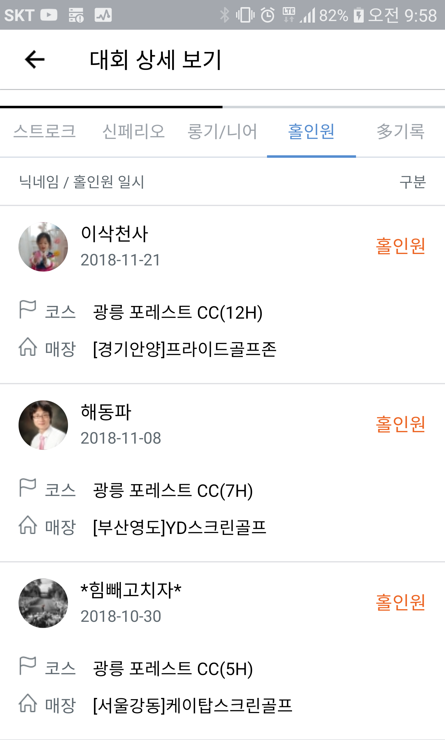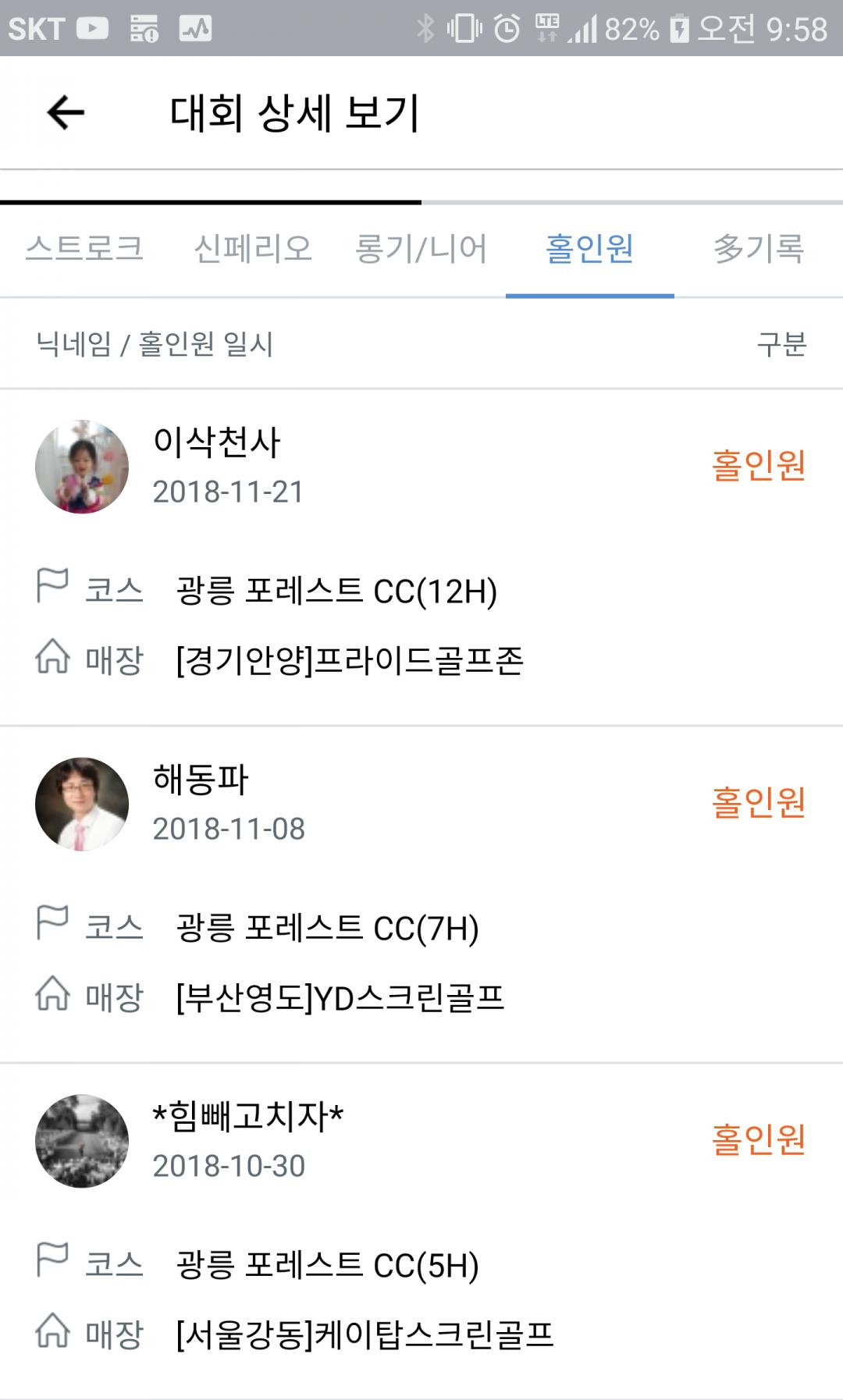 홀인원 : 이삭천사, 해동파(니어), 힘빼고치자
