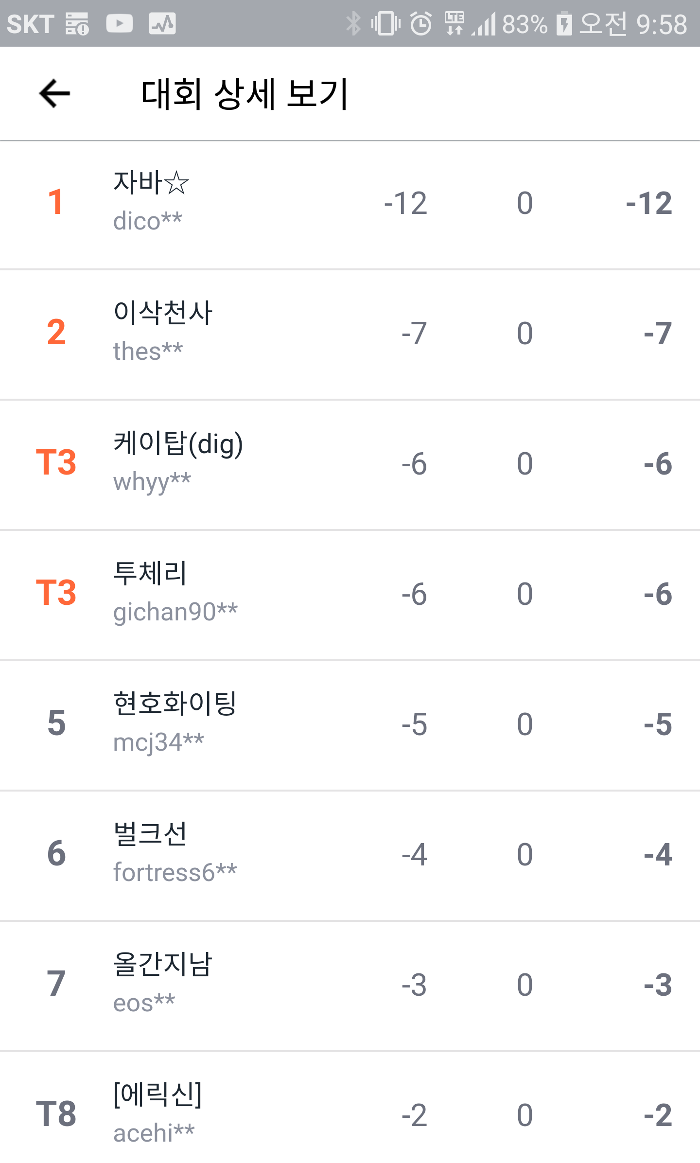 스트로크 1위 : 자바 -12언더