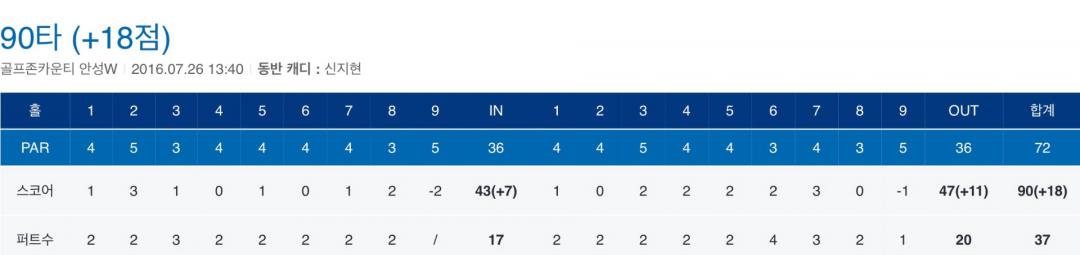 희안하게 전반9홀 후반9홀만 점수가 좋아서 ㅋㅋ 웃기네요 ㅎ
