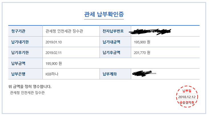 당연하게도? ㅎㅎ 관세 , 부가세 모두 내게 되었습니다.