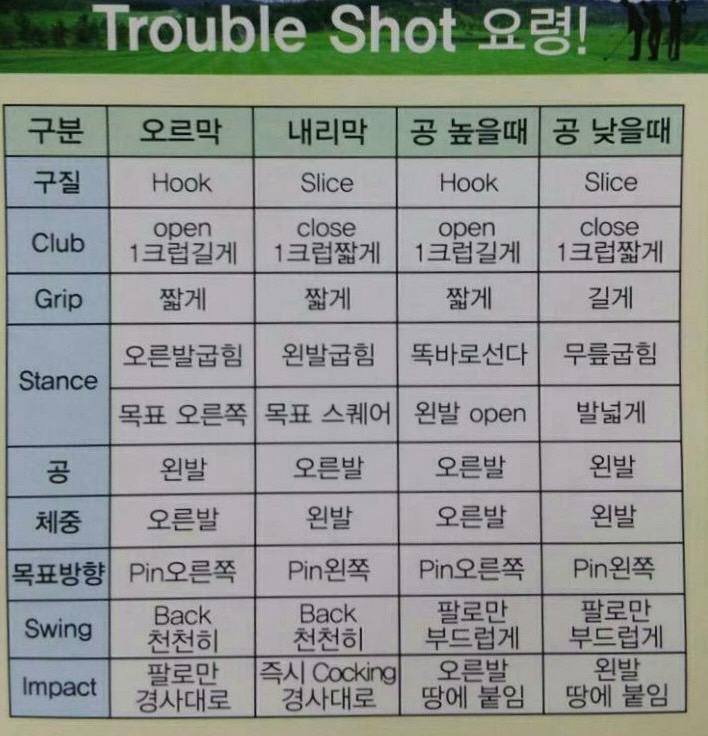 트러블 샷은 무조건 몸통 고정, 팔로만...