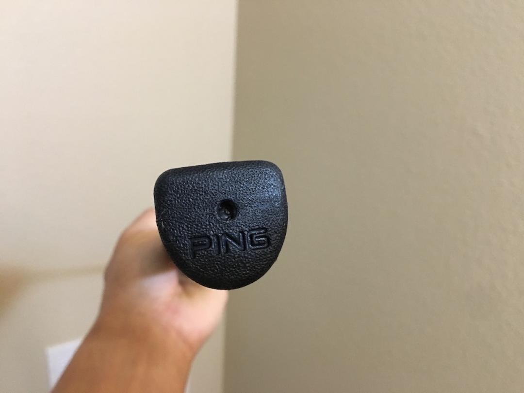 아래 사진에서 보면 그립 끝에 저렇게 렌치가 들어갈 수 있는 구멍이 있는데, 저기에 툴을 이용해서 돌려주면 퍼터가 쑥쑥 자라거나 푹푹 내려갑니다.